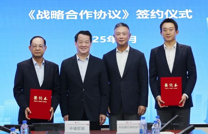 2025年3月26日,中国玻璃控股有限公司(以下简称中玻控股)与中信银行股份有限公司深圳分行(以下简称中信银行深圳分行)在中信证券大厦正式签署战略合作协议,此次签约标志着双方将在金融和实体领域展开全面而深入的合作。